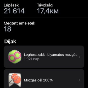 A két nap összesen közel 35 km mozgást hozott (az órám szerint, és neki mindig igaza van). Estére el is fáradok rendesen, és jólesően.