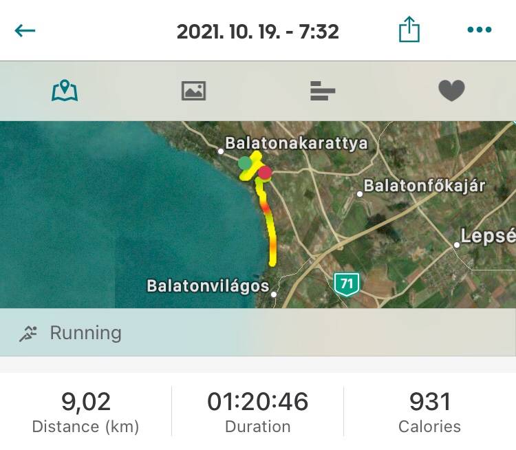 Kedden nem szorított az idő, mert az őszi szünet miatt csak az angol nyelvű képzésen volt tanítás, és csak délutánra kellett mennem. A futás elején hasonlóan éreztem magam, mint az előző két napon. De belegondoltam, hogy semmi valódi okom sincs keveset futni, akár futhatnék valami “rendes” távot is. Ettől csak-csak beindult a gépezet, meglett 9 km.