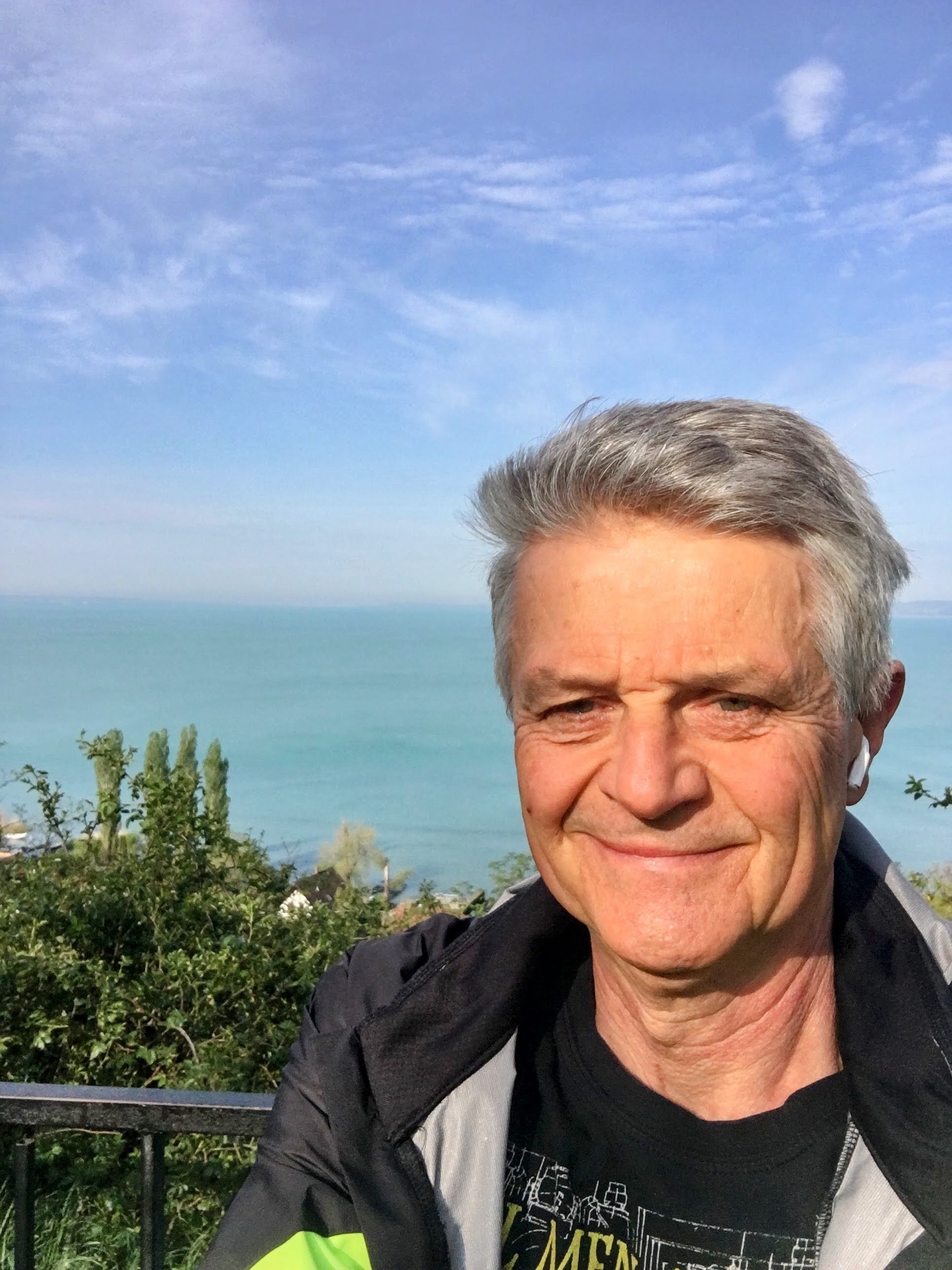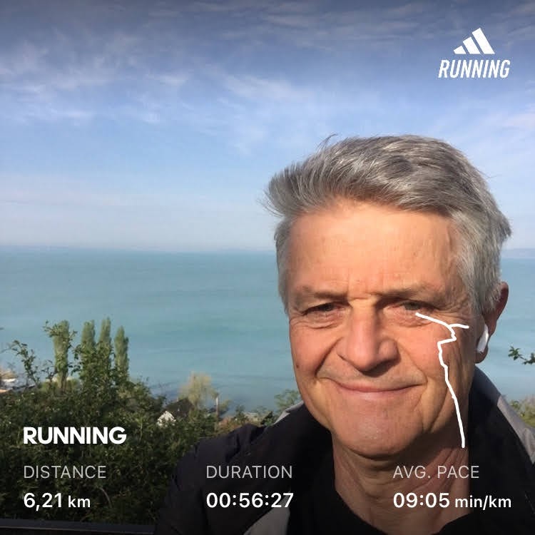 Na, szóval, a futás: minden tökéletes volt, tiszta idő, szép balatoni kilátás a Diófa utcai kilátó ponton, és a végén a frissítés. Volt egy rövid beszélgetés is egy kedves ismerőssel, aki munkába menet itt vette magához a reggeli kávéját egy rétes kíséretében.