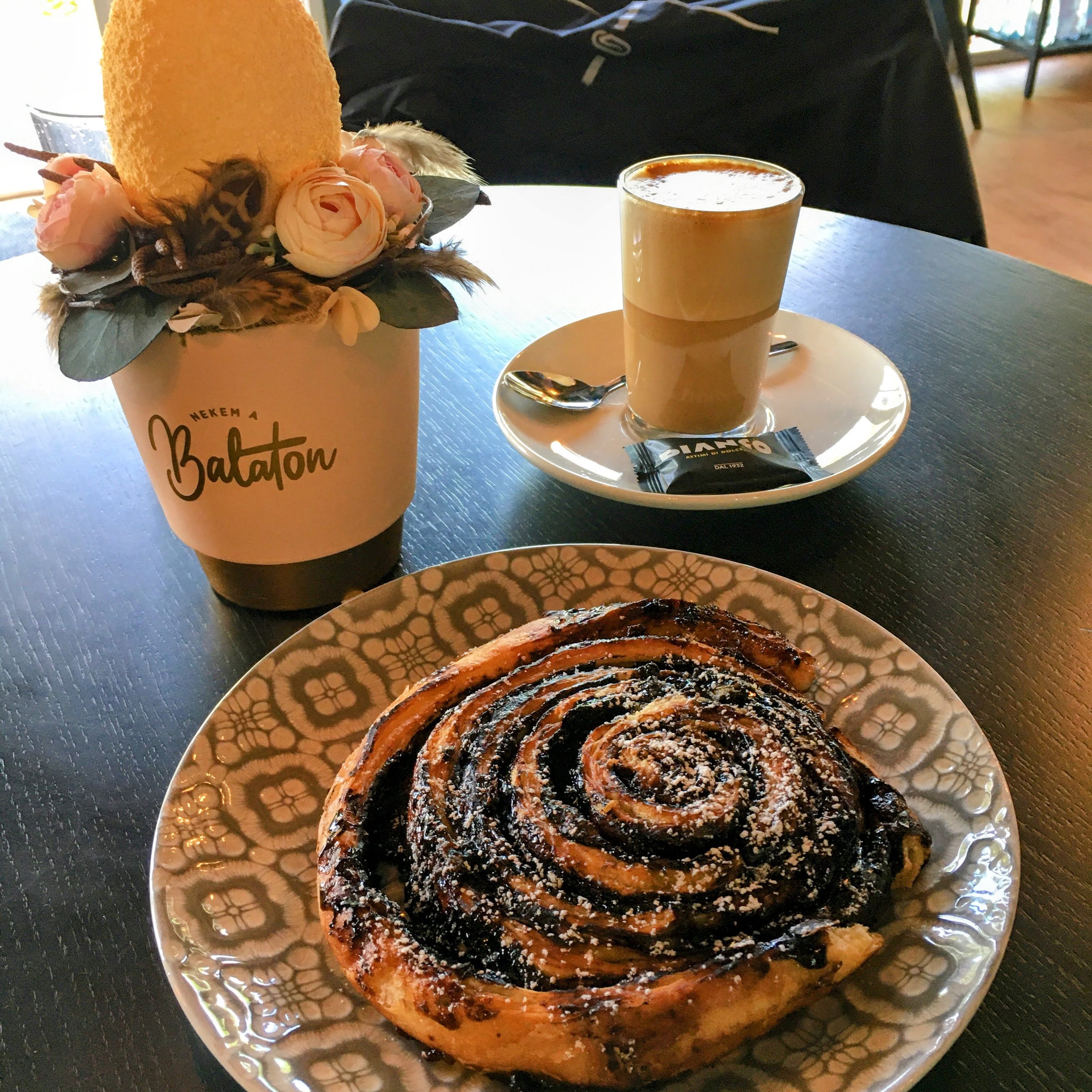 Nem válogattam, hogy mit egyek, azt választottam, ami elsőnek sült ki. Micsoda szerencse, ez éppen a kedvencem, a Vál Völgye Pékség csokis csigája lett! Ami a kávét illeti, az utóbbi időben nagyon rákaptam az általam “feltalált” és az egyik barista által fura kávénak elnevezett italom helyett a cortadora. Először csak kíváncsiság, “kaland” volt, de mára szokássá kezd válni.