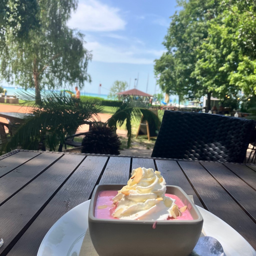 Általában a kompra várva szoktam a reggeli kávét és édességet magamhoz venni, de tegnap a várakozás elmaradt, így csak Füreden tízóraiztam.